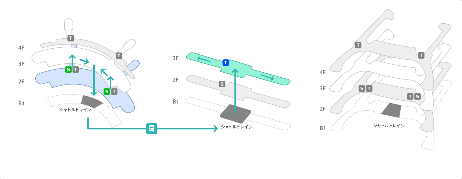 STEP 02シャトルトレインに乗って搭乗棟へ移動